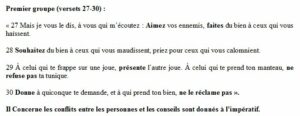 Le texte d’aujourd’hui est divisé en trois groupes bien précis :