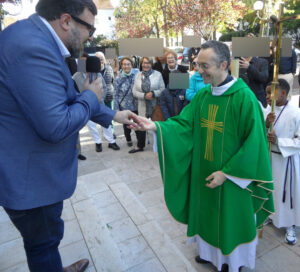 Après la prière qui suit la communion, ce dernier s’ adresse brièvement à la communauté pour lui dire quelques mots.