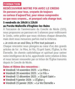 Un parcours de 5 séances sur le credo (voir les dates et les thèmes ci-dessous)